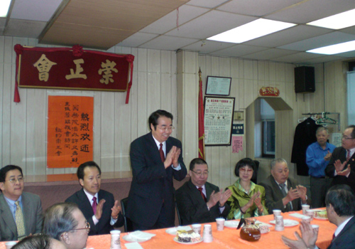 中新网3月3日电 率领“文化中国•四海同春”艺术团在纽约成功举行演出的中国国务院侨办副主任许又声,1日来到纽约唐人街,沿街拜会侨团,走访华商企业。图为国侨办副主任许又声拜会纽约崇正会。