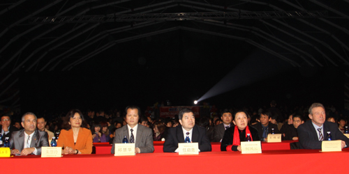 意大利帕多瓦省省长卡萨林、中国驻米兰副总领事何凤云、国务院侨办副主任任启亮、威尼斯华侨华人联合总会会长邱慧华等与观众一起观看演出