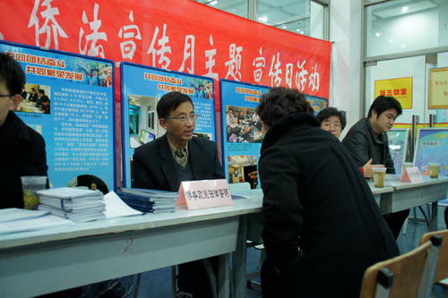 中新网3月10日电 据上海市侨办消息,根据上海市侨办精神,上海市闸北区侨办会同宝山社区(街道)党工委、办事处,于3月5日上午在宝山社区文化活动中心,以“侨界和谐、共迎世博”为主题,以《中华人民共和国归侨侨眷权益保护法》等侨务法律法规为主要内容,开展了“2010年闸北区侨法宣传月主题宣传日”活动。