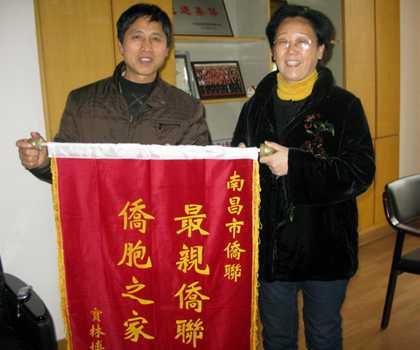 中新网3月11日电 据南昌市侨联消息,近日,江西省南昌市侨眷、西湖区宝林书画博物馆馆长胡保林先生来将一面写有“最亲侨联,侨胞之家”的锦旗赠送给南昌市侨联,感谢南昌市侨联在城市规划建设中积极努力,争取保留了博物馆,避免了被拆迁的遗憾。