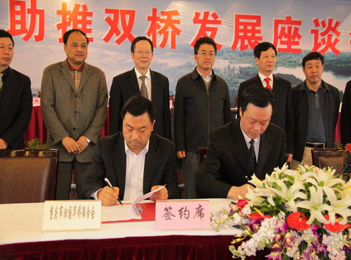 重庆市侨联副主席徐万忠代表市侨联与双桥区人民政府代表分别在战略合作协议上签字。