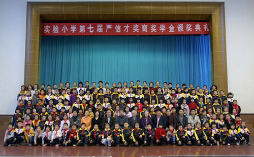 中新网4月8日电 据北仑区侨联消息,4月6日,浙江省宁波市北仑区实验小学内举行了第七届严信才奖育奖学金颁奖仪式。浙江省爱乡楷模、香港甬港联谊会会长严信才先生亲临该校,并与获奖师生合影留念。
