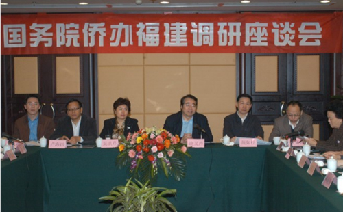 中新网4月8日电 据福建侨网消息,4月6日,国务院侨办副主任许又声率调研组一行6人在福州温泉大饭店召开“国务院侨办福建调研座谈会”,为做好全国侨务工作会议的筹备工作展开调研,会议由福建省侨办主任曾晓民主持,福建省侨办领导以及侨办机关各处室相关负责人,福建省部分市、县(区)侨办主任和华侨农场场长参加了座谈会。