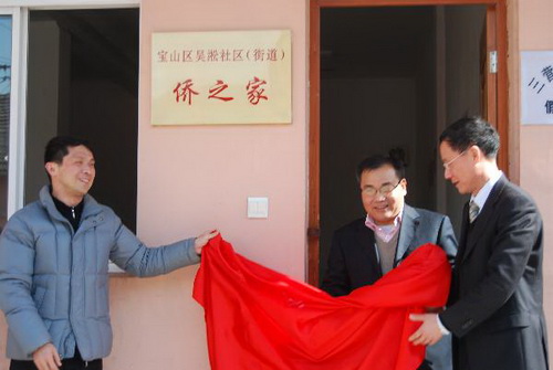 宝山区委统战部副部长、区侨办主任黄忠华,区侨联主席曹晋和,吴淞社区(街道)党工委副书记徐子平等人共同为吴淞“侨之家”揭牌,并向侨界世博志愿者队授旗。