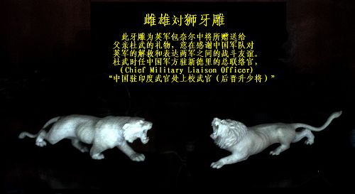 据悉,此次捐赠仪式交接的一对印度象牙精雕的雌雄狮子,是1943年由英军元帅蒙巴顿的办公室主任鲍威尔中将赠送给杜武将军的私人礼物,意在感谢中国远征军于1942年4月在缅甸仁安羌解救7000名被日军包围几乎弹尽粮绝的英缅军官兵和500名西方国家的记者、教师和传教士。这对牙雕曾辗转于印度,重庆,南京,渥太华,卡尔加里。历经68年的蹉跎岁月,如今由侵华日军南京大屠杀遇难同胞纪念馆收藏并展出。这对牙雕是中国抗战史上非常稀有的历史文物,是中国远征军英勇作战,解救英军的历史佐证,具有较高的历史价值。(许嘉明)