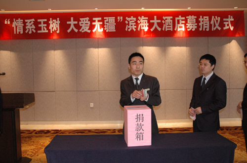 中新网4月23日电 据温州市侨办消息,“一方有难,八方支援”。为支援青海玉树地区抗震救灾,4月22日上午,浙江省温州侨商会常务副会长、全德华人社团联合会荣誉主席、温州滨海大酒店董事长冯定献先生率先行动起来,带领全体员工在自己的酒店举行了“情系玉树,大爱无疆,温州滨海大酒店募捐仪式”,并以个人名义通过温州市侨办和龙湾区慈善总会各捐5万元,共10万元人民币。