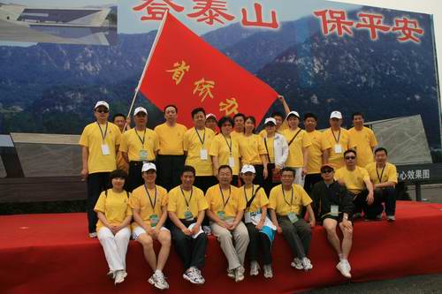 中新网5月11日电 据山东省侨办消息,5月8日上午,山东省侨办组团参加了在泰山举行的2010年山东省全民健身月启动仪式暨省直机关登泰山活动。