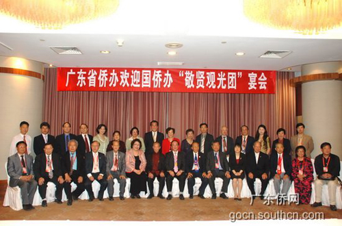 中新网5月18日电 据广东侨网消息,5月13日晚,广东省侨办、广东省海外交流协会在广州花园酒店设宴隆重款待来广东参观访问的国侨办、中国海协第十二期“敬贤观光团”。广东省侨办主任、省海协常务副会长吴锐成、省侨办副主任黎静会见并宴请了观光团所有成员。