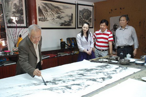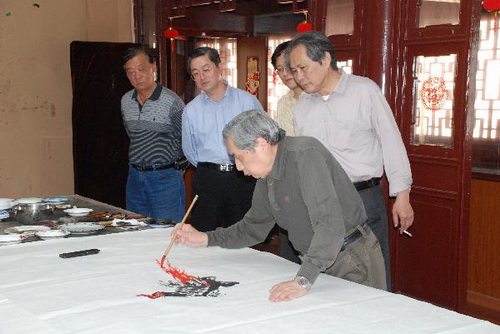 中新网5月19日电 据上海市侨办消息,5月12日,著名画家刘国松、徐昌酩应邀赴大境阁与上海市华侨书画院部分书画家进行艺术创作与交流。