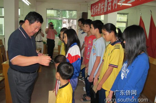 鲁古村谭欣欣同学代表受助学生衷心感谢广东省侨办的叔叔阿姨们,表示一定会努力学习,学好本领,回报社会,建设好家乡。朱尔武向受助学生发放了助学金,广东省侨办妇委会代表向困难母亲送上了慰问金。(文/肖锡权)