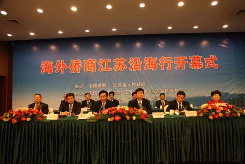 中新网5月25日电 据中国侨联网消息,5月16日,由中国侨联和江苏省政府联合主办,中国侨商联合会、江苏省侨联、江苏省侨商总会共同协办,连云港、盐城、南通三市具体承办的“海外侨商江苏沿海行”活动在江苏省连云港市隆重开幕。来自世界20多个国家和地区的150余位海外侨商参加了活动。