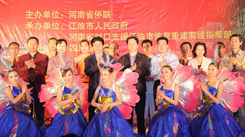 此次演出是在河南省对口援建江油的任务基本完成和由中国侨联援建的北川中学即将竣工之际,河南省侨联为了表达对援建、捐建四川地震灾区建设者的崇高敬意,组织近50名演员专场慰问演出。四川省侨联从组织接待、提供用车、制定方案、联络协调、勘测场地、组织参观、安全保障等给予了全方位的配合和支持。绵阳市侨联、江油外侨办积极参与,组织有序,使2000多名援建工作者和当地群众、学生观看了演出,达到了慰问目的。(赵建中)