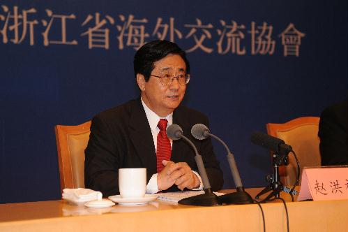 赵洪祝在简要地介绍了浙江经济社会情况和发展前景后说,浙江新一轮的发展,离不开广大海外侨胞、港澳同胞一如既往的关心支持,同时也为大家回乡投资、反哺家乡提供了一个更为广阔的舞台。他提出三点希望: