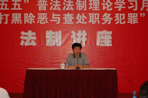 中新网6月24日 据重庆市外侨办消息,6月18日上午,重庆市外侨办举行了“打黑除恶与查处职务犯罪”专题讲座。此次讲座是根据重庆市委宣传部、市委法制建设领导小组办公室、市司法局有关“五五”普法工作的要求和《市外侨办2010年法制建设工作安排计划》,落实外侨办法制理论学习月具体措施的专项活动之一。