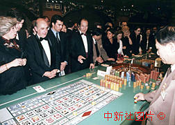 澳督出席葡京娱乐场的新年开赌仪式。 (《澳门缤纷》之"旅游博彩业")