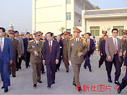 解放军驻澳门部队19日公开亮相,国务院副总理、澳门特别行政区筹委会主任委员钱其琛在驻澳部队政委贺贤书、司令员刘粤军陪同下,与澳门各界人士一起参观驻澳部队珠海基地。