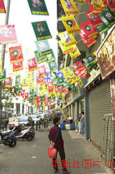 澳门小街满挂庆祝回归的彩旗,洋溢欢乐氛围。