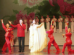 将于20晚举行的澳门回归庆典文艺晚会阵容鼎盛,名歌手牟玄甫和曲比阿乌在排演牡丹之歌。 中新社传真 陈佳摄