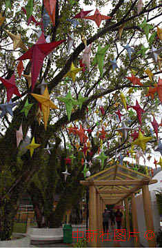 澳门氹仔岛的古树上满挂千颗吉祥星,祝愿回归盛典心满意足。