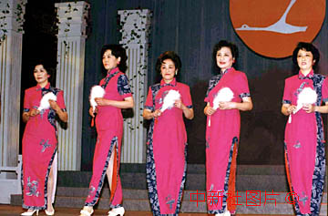 上海侨界老年时装队十二月十七日以时装表演形式庆祝澳门回归。