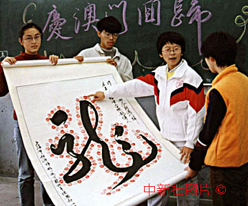 上海澄衷中学学生杜蔚琼花了近三个月时间,用九十九种共一百九十九个龙形图案印章和一个草书“龙”字,组成一幅由书法和篆刻艺术相结合的特殊礼品。它将作为上海市民的礼物,送给澳门特区行政长官何厚铧。
