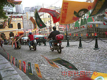 澳门大街小巷回归之日张灯结彩,充满喜庆气氛。中新社传真 贾国荣摄