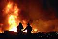 图文:消防人员扑灭坠毁飞机上的火焰
