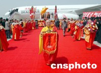 组图:法门寺佛指舍利在咸阳机场登上专机赴台
