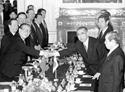 图文:朱镕基总理与出席欢迎仪式的日方官员握手