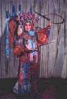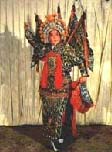 女靠上身与男靠形式差不多,下身缀着五色绣花的飘带,并在靠里衬着裙子,但在开打时,里面也不裙子。