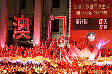特写:澳门回归时 北京欢腾夜(图文) ![]() 中新社北京十二月二十日零点十分电 特写:澳门回归时 北京欢腾夜 中新社记者 刘福魁 赵江涛 十九日午夜,中国的心脏——天安门广场再次成为花的海洋、歌的海洋、舞的海洋。 四十分钟前,“北京市人民庆祝澳门回归祖国联欢晚会”就在这歌潮花海中举行。三万名首都各界群众代表着十二亿 中国人民在这里迎接远去的“大雁”归来。 广场东面的倒计时牌前搭起巨大的舞台,一朵巨型莲花盛开在舞台中央。一千多名演职人员表演的大型系列歌舞,把 倒计时牌两侧熠熠闪烁的“澳门你好”的晚会主题尽情挥洒。 五百九十五天前竖起的倒计时牌,显示离澳门回归还有三十分钟。礼花燃起,晚会正式开始。中共北京市委书记贾庆 林、北京市长刘淇等观看了晚会。 如潮的音乐奏响了澳门回归的序曲。大型歌舞《九九雁归来》在北京城建系统六百人组成的“雁归图”背景前上演: 三只头雁引领着四十只大雁,似高飞归来的雁队,象征离散四百多年的澳门即将回到祖国的怀抱。为了这一夜,期盼已久的北 京人民精心准备了《龙翔龙舞》、《澳门你好》等六个大型歌舞。 放眼望去,整个天安门广场一派灯火辉煌。夜空中不断喷发的礼花绚烂多彩,映照着人民英雄纪念碑前“庆祝澳门回 归”六个大字的标语牌。纪念碑前,数万名来自北京四十多所高校的学子和东城、西城、宣武、崇文四区的群众组成巨大联欢 方阵,和着欢快的音乐节拍跳起了集体舞。 曾参加国庆五十周年大典的北京武警总队表演的一百余只北狮,在广场表演区与数百条风格各异的长龙一起,用中华 民族最具传统的方式演绎“龙腾狮跃迎回归”的主题。现场指挥的一位负责人介绍说,参演的舞龙队伍是从全国十三个省市区 精选出来的,有“蟠龙”、“风龙”、“百人长龙”等三十多种。 二十分钟前,广场上空回荡的《跨越九九》舞曲让人久久回味,倒计时牌上的时间正一分一秒向子夜零时逼近,此时 离澳门回归只有十分钟。 中心会场区舞台上,六百名演员手持大红灯笼遥望远方,一位“世纪老人”在儿童的簇拥下,缓缓走向光明,预示着 澳门回归的时刻就要来临。 广场上巨龙飞舞、雄师腾跃,人人手挥五星红旗和澳门特区区旗,把喜悦写在脸上,把欢乐洒向夜空。这时,澳门政 权交接仪式的现场画面出现在中心会场区两侧两个大屏幕电视上,吸引着越来越多的目光。 三万名狂欢群众翘首期盼这一刻:公元一九九九年,十二月二十日,零点零分零秒。 零点之前,欢腾的天安门广场出现短暂平静,许多人都屏住了呼吸。 “十、九、八、七、六、五、四、三、二、一”,伴随着倒计时牌显示的最后十秒,三万狂欢的群众发出整齐划一、 富有节奏、声震寰宇的欢呼,淹没了夜空中灿烂礼花的炮声,淹没了北京电报大楼午夜报时的钟声。 “澳门回来了!”“澳门回到祖国的怀抱了!”光影灯海里的天安门广场再次沸腾起来,汇成彩旗的海洋、歌舞的海 洋、狂欢的海洋,驱走了深夜北京摄氏零下十二度的严寒。 此刻,“北京市人民庆祝澳门回归祖国联欢晚会”达到高潮。四百年的梦想,几代人的期盼,终于迎来了这辉煌的一 刻。二十多个国家和地区的九十六家新闻媒体把这一刻传向五洲四海,让世界分享中华民族的喜悦。 此刻,一位在北京师范大学读书的澳门学子吟起了《七子之歌》:“你可知‘MACAU’不是我真姓,我离开你太 久了,母亲!我要回来,母亲!”诗人闻一多七十多年前写下的深情期盼,终于成为现实。 此刻,历史与现实交汇在一起。阅尽沧桑的天安门城楼再次目睹了民族历史上的又一盛事。“决不能把殖民主义的尾 巴拖到下个世纪”,邓小平十三年前的愿望终于成为现实。 为了这一刻,中华民族已经期盼了许久。四百多年前,葡萄牙人登陆澳门并逐步强占了澳门;一百多年前,晚清政府 的衰败,被迫允许葡萄牙殖民主义者“永驻管理”澳门。一个泱泱东方大国竟被列强蚕食、瓜分。五十年前,毛泽东“中国人 民从此站起来了”的庄严宣告,结束了那个屈辱的时代。今天,澳门的回归,宣告了殖民统治在中华大地上的彻底终结。 为了这一刻,中国领导人以博大胸怀和超卓智慧提出了“一国两制”的伟大构想,并首先在香港得以成功实践, 澳门的回归将为实施这一伟大构想再续辉煌,为国际社会处理国与国之间的关系树立了典范。中国人民有理由相信,这一伟大 构想亦将适用于台湾问题的解决,早日实现祖国的完全统一和中华民族的伟大复兴。 为了这一刻,一代又一代中华优秀儿女苦苦求索,为了民族的独立和国家的统一,壮怀激烈,不屈不挠,英勇奋斗。 此时此刻,中华儿女可以告慰先人,无愧于后人。 在天安门广场人民英雄纪念碑前,北京的欢腾之夜,迎回了中华民族长期失散的游子,迎来了新世纪曙光即将喷薄而 出的黎明。(完) |