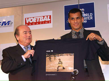 图文:里瓦尔多荣获1999年世界最佳球员称号 2000年1月25日 07:20 ![]() ![]() ![]() 布鲁塞尔1月24日消息:西班牙巴塞罗那队的巴西前锋里瓦尔多24日被评选为国际足联1999年世界最佳球员 。 据新华社报道,里瓦尔多在有140个国家队教练参加的投票评选中获得胜利,并成为继罗马里奥(1994年)和 罗纳尔多(1996和1997年)之后第三个赢得这一殊荣的巴西球员。 英格兰中场球员贝克汉姆和阿根廷的巴蒂斯图塔在这次投票中,分别名列第二和第三。 里瓦尔多1999年为巴西赢得美洲杯赛冠军和为巴塞罗那队夺得西班牙甲级联赛冠军作出了杰出的贡献。他上月还 被评选为1999年欧洲最佳球员。 里瓦尔多还被《世界足球》杂志的读者评选为1999年世界最佳球员。 中国女子足球队队长孙雯获得了1999年女足最佳运动员奖,并领取了1999年世界杯女子足球赛金靴奖。 |