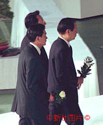 特写:目击日本前首相小渊葬礼(图文) 2000年6月8日 22:00 ![]() 中国政府特使钱其琛副总理(右)率外交部部长助理王毅和驻日大使陈健,八日参加在东京日本武道馆举行的日本前首相小渊惠三葬礼。中新社记者 刘敬师 摄