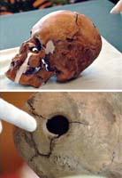 山东考古新发现:五千年前祖先能做脑手术(附图) 2001年06月27日 13:04 ![]() 今年3月,考古人员在整理人骨标本时,发现该头骨右侧顶骨的的靠后部有一直径为3.1X2.5厘米的圆形穿孔。头骨是山东省文物考古研究所在广饶傅家大汶口文化遗址中发掘出土的,为成年男性头骨。目前世界最早的开颅手术例证在欧洲发现,距今7000年左右。