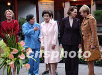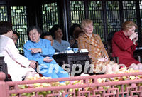 中新社上海十月二十日电题:首脑夫人豫园听戏 中新社记者关向东 仲秋的上海,桂花飘香,数位APEC领导人的配偶今天下午在五百年古豫园观景,在四百年古戏台听戏,体会了上海人的雅致。 建于明嘉靖年间的上海豫园,是一座闹中取静的江南园林:园外是熙熙攘攘的城隍庙,隔江是APEC主会场东方明珠,而她要为客人们演绎的是上海的古韵。 一身红色裙装,始终带着热带微笑的澳大利亚霍华德总理夫人珍妮特·霍华德,是女宾中最早到达的。在城隍庙的上海商家,似乎对俄罗斯总统普京夫人柳德米拉·普京娜有特别的期盼。 清风挟裹着桂花的香气,在温软的园子里漂浮:夫人们身着裙装,颇有“争艳”的味道。在仰山亭的水榭边,金发的俄罗斯总统普京夫人柳德米拉·普京娜,身着苏格兰风格方格裙装与风衣,成了摄影记者眼中的“尤物”。而马来西亚马哈蒂尔总理夫人玛尔塔·萨尔贡·德·福克斯,一身丝制白地大朵粉花马来“克巴亚”,加上粉红纱披肩也十分抢眼。 “穿云龙墙”是一座有四百年历史的古墙,白墙清瓦,墙头一个雕刻精美的龙头,口含龙珠,勃勃欲飞,整个墙瓦也就顺势成了龙脊。 在龙墙前中国香港特别行政区行政长官董建华夫人董赵洪娉,与马来西亚马哈蒂尔总理夫人玛尔塔·萨尔贡·德·福克斯相向而立,微笑着听讲解员介绍。同样的亚洲“夫人”发式,同样的黄色皮肤,同样的小巧个头,看上去就是一对亲密的姐妹。 美丽的秘鲁第一夫人埃莱娜·卡尔普·德·托莱多,披着棕色的长发,她是夫人们中最年轻的一位,始终带着腼腆的微笑。在讲解员介绍江南名石“玉玲珑”的皱、瘦、漏、透特色时,她那一脸迷惑,透着可爱。 东道主江泽民主席夫人王冶坪,在豫园的内园古戏台迎接客人们的到来。 这座建于十九世纪末的古戏台,雕梁画栋,描金贴彩,被誉为“江南第一古戏台”。 在两层的还云楼落座,客人们开始一边品尝江南新茶,一边观看对面吊脚古戏台上的演出。 戏码非常地“中国”,有民乐《丝竹雅韵》、有吊线木偶、还有江南越剧《红楼梦》、中国昆曲《牡丹厅》。 演出期间,女主人热情地为身边的俄罗斯总统夫人与韩国总统夫人作介绍;温和的澳大利亚总理夫人则显得格外兴致勃勃。 演出结束后,王冶坪与领导人配偶们步下还云楼,一起与演员合影留念。(完) |
