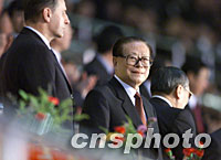 中国国家主席江泽民十一日晚在广州奥林匹克体育中心出席第九届全国运动会开幕式。中新社记者 毛建军 摄