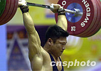 ![]() 云南张国政二十日在广东鹤山市体育馆以352.5公斤总成绩一举夺取九运会男子举重69公斤级金牌,并破全国纪录。中新社记者 梁永强 摄 ![]() 广东李宏利战胜奥运冠军占旭刚以370.0公斤总成绩夺取九运会男子举重77公斤级金牌,并超抓举亚洲纪录,决赛二十日在鹤山市体育馆举行。中新社记者 梁永强 摄