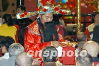 图:香港众多公共场所派吉祥符 2002年02月09日 15:19 ![]() 春节前夕,香港许多公众场所都有着中国传统服饰的财神为市民派发平安符,预祝市民出入平安及恭喜发财。中新社传真 任海霞 摄
