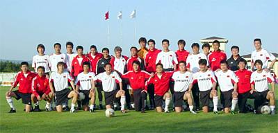 ![]() 中国足球队到达西归浦,图为首日训练“全家福”。郑红深摄