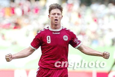 图:上半场丹麦队9号托马森罚入点球 2002年06月06日 15:29 ![]() 韩日世界杯A组塞内加尔与丹麦队的比赛将在韩国大邱综合体育场进行上半场9号托马森罚入一粒点球,丹麦队1:0领先。图为丹麦队9号托马森。