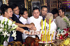 ![]() 港产电影《无间行者》台前幕后24日在香港进行拜神开镜仪式,几位主角梁朝伟、刘德华、曾志伟与及该片导演刘伟强等人拜神,拍摄期望工作顺利。邓庆乐 摄