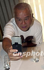 ![]() 一头金毛的曾志伟24日在香港出席港产电影《无间行者》拜神开镜仪式后,试用有数码摄影功能的新手机,自娱一番。邓庆乐 摄