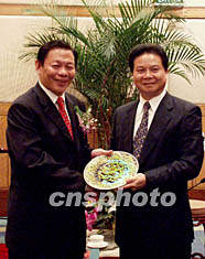 图:汤炳权会见新加坡金鹰集团董事主席一行 2002年08月09日 17:16 ![]() 九日,广东省副省长汤炳权在广州白天鹅宾馆会见了到访的新加坡金鹰国际集团董事主席陈江和一行,陈先生盛赞广东的投资环境,并有意在粤投资发展造纸项目。作者:罗仰明
