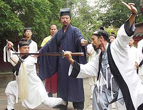 中新网北京9月12日消息:少林、武当、峨嵋中国三大武林门派,日前史无前例的齐聚峨嵋山金顶“报国寺”同台竞技。与此同时,海外一些媒体也爆出猛料,称武当掌门游玄德自言练成失传已久的两大绝世武功:大理段家的“一阳指”和丐帮的“降龙十八掌”。