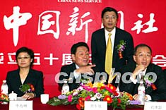 中国新闻社成立五十周年庆祝大会二十六日在北京举行,国务院侨办主任郭东坡、副主任李海峰出席会议,并与国务院侨办副主任、中新社社长刘泽彭及副社长刘北宪一起阔论中新社的业务发展。作者:毛建军