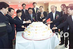 中国新闻社成立五十周年庆祝大会二十六日在北京举行,国务院侨办主任郭东坡、副主任刘泽彭、李海峰及中新社总编辑郭招金、副社长刘北宪、副总编章新新等和出席社庆大会的嘉宾共同切中新社生日蛋糕。作者:毛建军