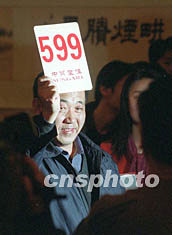 记者在拍卖现场看到,符合竞买资格并参加竞拍的只有持五百九十九号竞买牌的买主,而当拍卖师宣布《研山铭》手卷起拍价为二千九百九十九万元的时候,这位买主毫不犹豫地举起了竞买牌,以起拍价毫无争议地竞得了该手卷。这位买主透露,《研山铭》手卷将被不日展出。拍卖会后经多方了解得知,买主为中国文物信息咨询中心。