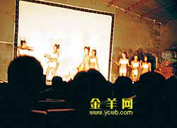 9时,表演准时开始,早已等得不耐烦的观众一阵欢呼。几个穿着三点式的女孩充当现场DJ,先扭了扭屁股,便用音效很差的麦克风报起幕来。