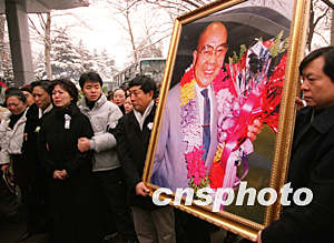 北京两千名京剧票友与袁世海先生亲属向袁先生悲痛告别。