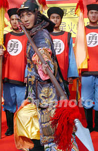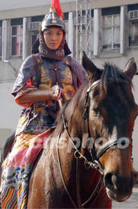 香港亚视推出“太平天国”大型电视剧(星火燎原──上篇)十二月二十三日举行记者会,艺员陈炜一身将军骑马打扮显英姿。钱兴强摄
